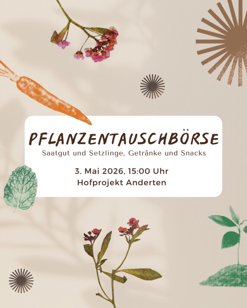 👉 Wer Pflanzen mitbringen möchte, sollte sich zur besseren Planbarkeit gerne unter pflanzentauschboerse@freunde-andertens.de anmelden.